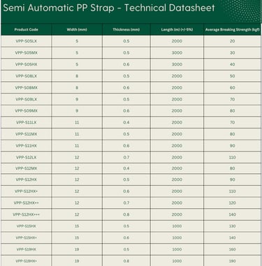 Ventora PP (Polypropylene) Straps are designed to offer cost-effective and reliable strapping solutions for light to medium loads. Manufactured with precision and consistent quality, these straps deliver exceptional performance for both manual and automatic strapping applications.