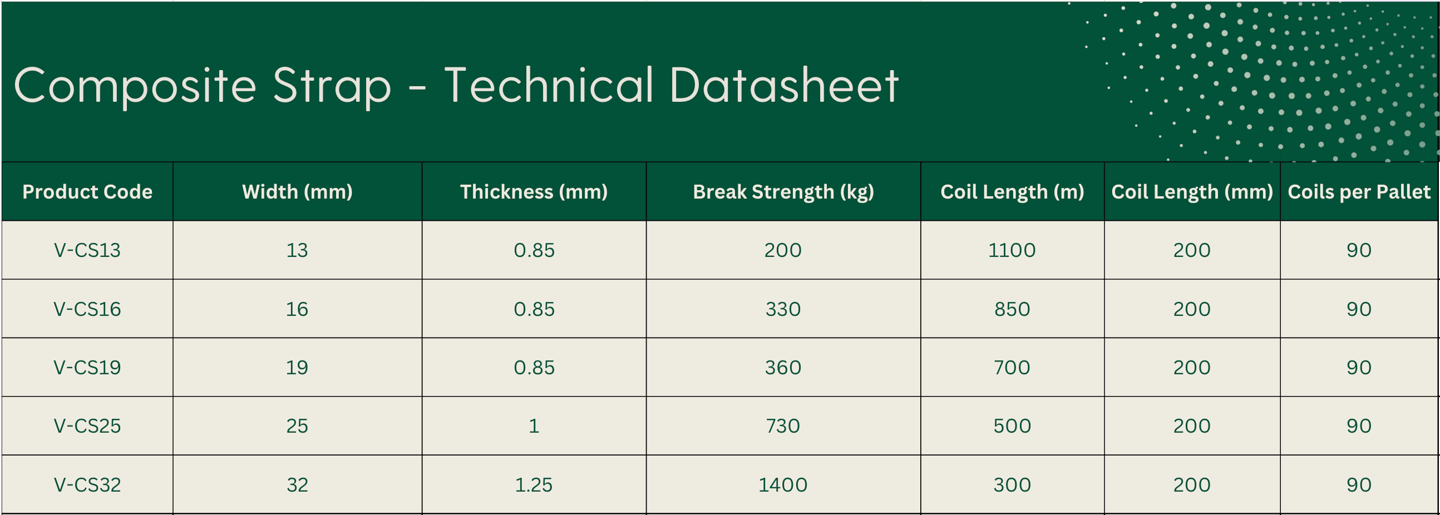 Ventora Composite Straps, also known as Cord Straps, are manufactured from high-tenacity polyester yarns coated with a protective polymer. They are designed to replace steel strapping in demanding industrial and export applications, offering both superior strength and easier handling.