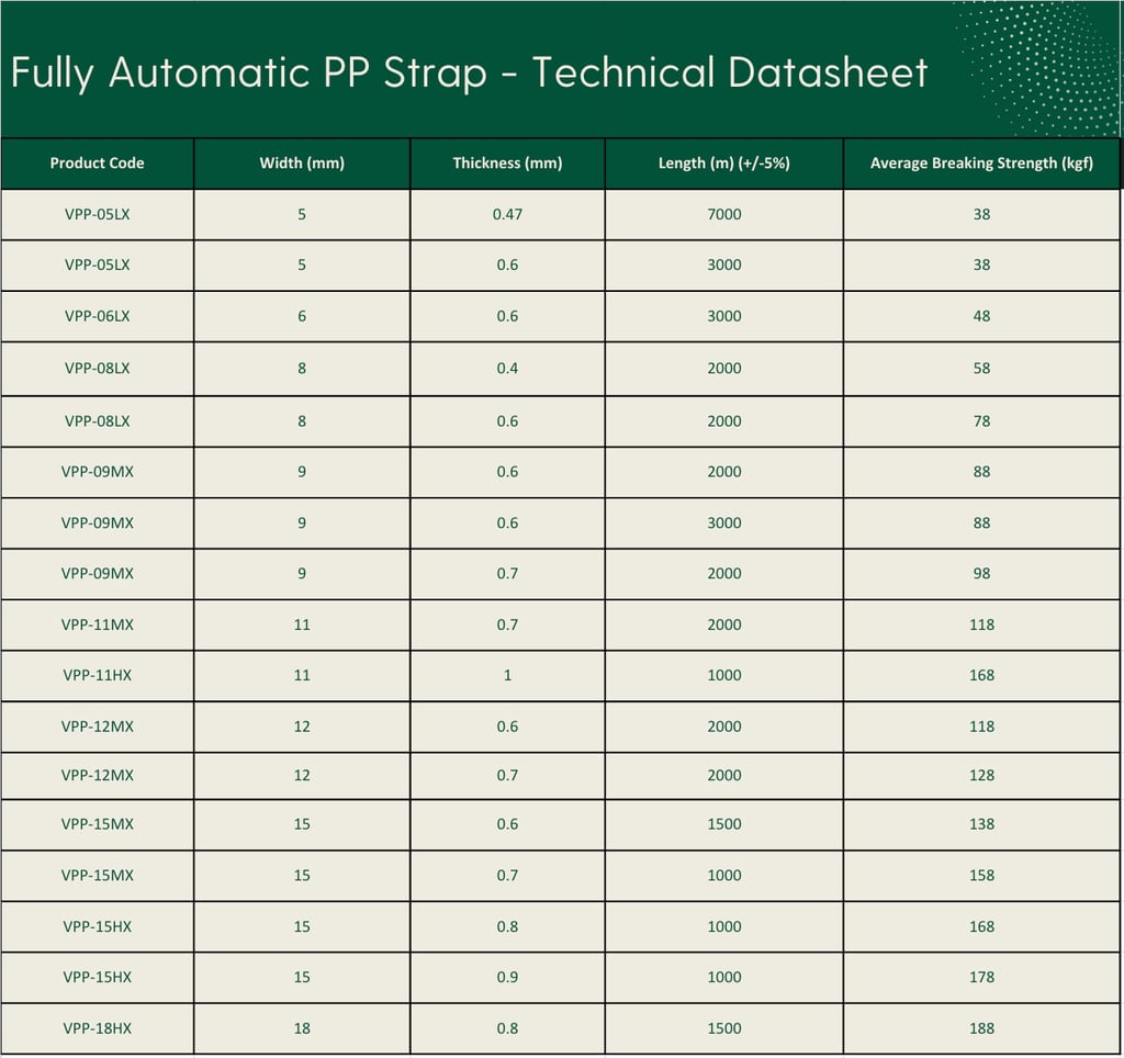 Ventora PP Straps are manufactured using high-quality polypropylene with strict quality control, ensuring consistent tensile strength, perfect sealing, and smooth machine compatibility.